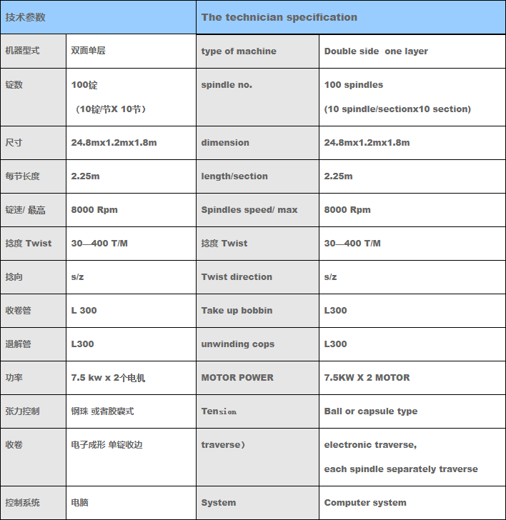 主要適合1000D 以上粗紗加捻,用于工業(yè)縫紉線(xiàn),輪胎簾子線(xiàn),箱包線(xiàn),傳動(dòng)帶 粘合線(xiàn)等